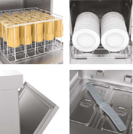 Galimybė papildomai pasirinkti : vandens išmetimo siurblį, chemijos dozatorius, papildomą skalavimo siublį, stovą indaplovei pakelti, spec. krepšelį, skirtą buteliams plauti, integruoti į korpusą chemijos konteineriai.